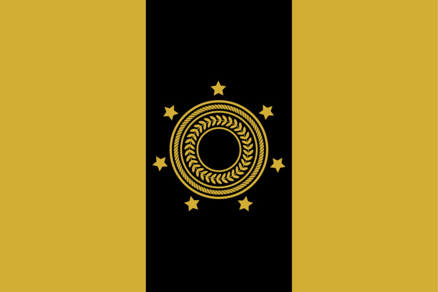 FUN FACTS ABOUT EZAEKIA AND ITS RIVALThe Charryzavesh National Capital Regional Flag (formally known as the Ghervatic flag or the Muheyai flag), is Ezaekia's capital regional flag. It has a golden triangle design within the triangle black field, which represents Ghervatic lineage. Inside the triangle design is another triangle that Ghervatics depict as a lunar eclipse, a phenomenon they believe personifies both God's voice and His divine intervention. The CNCR's flag is often flown with the nation's flag during ceremonies, war, special events, and occasions. The gold colors represent honor, dignity, leadership, and freedom from all temptations. The black represents war, the wrath of God and his people, and a warning to enemies. The 3 stars represent peace, purity, righteousness, glory, salvation, and the Holy Trinity.